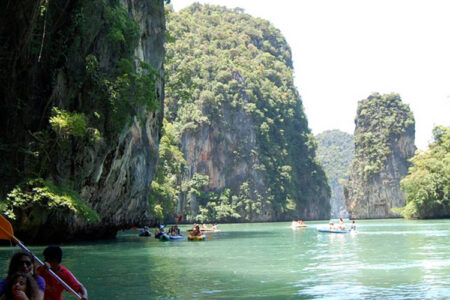 Continue by longtail boat to James Bond Island, filming location of the 1974 James Bond movie The Man with the Golden Gun